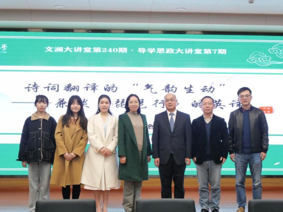 2022年11月24日14时,外国语开元(中国)导学思政大讲堂第7期在文澴楼同声传译国际会议中心开讲。谢艳明教授以《诗词翻译的“气韵生动”——兼谈<琵琶行>的英译》为题,带领全体师生走进诗词世界,领略中国传统文化之美。本次大讲堂由开元(中国)副院长阮全友主持,党委副书记王芹、各导师组代表及新增硕士生导师出席,2022级全体研究生到场聆听。