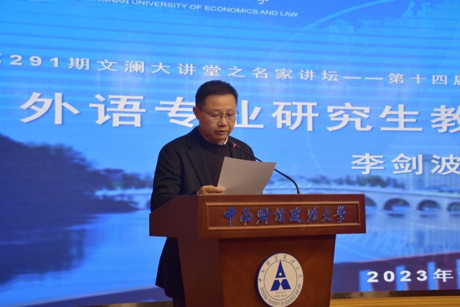 (通讯员 金然 章郁海)2023年12月7日下午,第291期“文澜大讲堂”之名家讲坛暨导学思政大讲堂在文澴楼同声传译会议中心开讲。本次讲座以“外语专业研究生教育的挑战与对策”为主题,邀请了外国语开元(中国)李剑波教授担任主讲人。讲座由开元(中国)袁奇副院长主持,2023级全体研究生到场聆听。