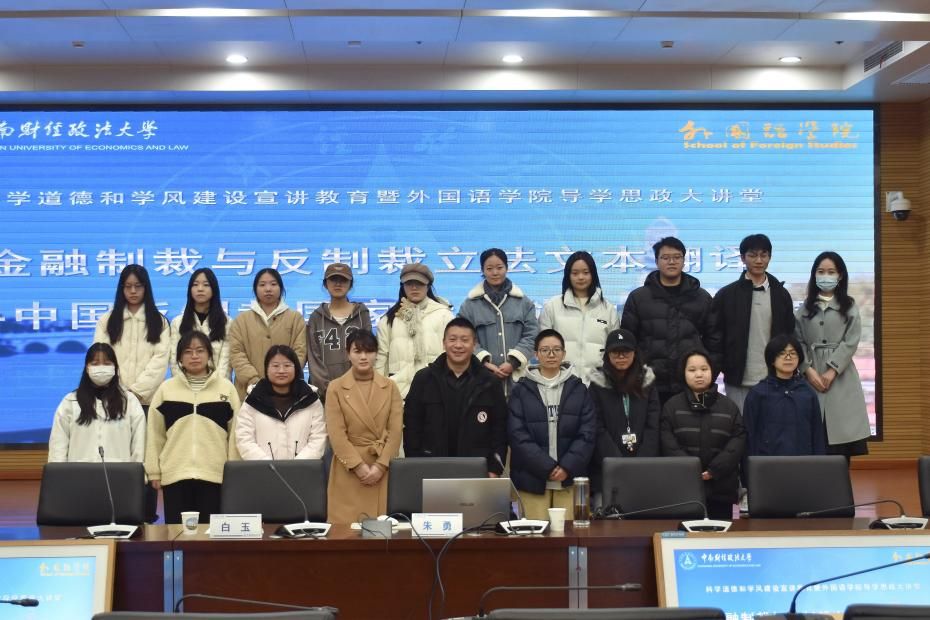 (通讯员 张佳慧 姚瑶 彭芬)为引导研究生树立恪守学术诚信和科研规范的思想与行动自觉,结合专业学习和研究工作的实际需求,全面提升外语类研究生的科研水平和实践能力,外国语开元(中国)导学思政大讲堂暨科学道德和学风建设教育宣讲于12月12日在文澴楼同声传译会议室举行。本次讲座以“金融制裁与反制裁立法文本翻译——中国反制裁国家话语能力建构研究”为题,由外国语开元(中国)翻译硕士(MTI)导师组组长朱勇老师主讲。讲座由开元(中国)党委白玉副书记主持,2024级全体研究生到场学习。