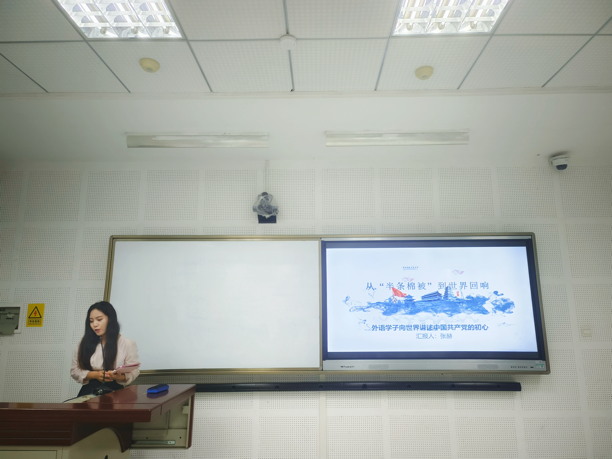 比赛现场,选手们依序上台宣讲,将自身成长、学习、实践经历感悟与党史深度融合,以外语人的独特视角,用鲜活的细节生动再现了战争年代革命先辈的英勇事迹,深刻阐释了抗战胜利的重大意义,让红色记忆在现场徐徐铺展。