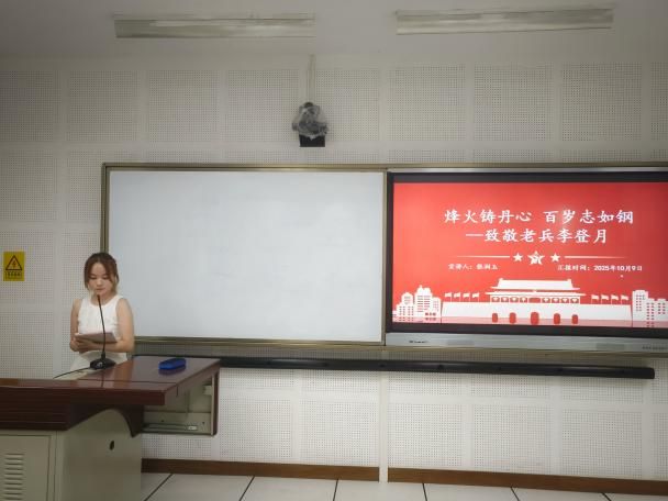 2025级英语笔译专业张润玉以“烽火铸丹心,百岁志如钢——致敬老兵李登月”为题,讲述了战士李登月少年从军、浴血奋战、战后投身教材编写的一生,号召青年学子传承老兵精神,为民族复兴不懈奋斗;2025级外国语言学及应用语言学专业徐书颖以“来时少年身,归去英雄魂”为题讲述杨靖宇等英烈及当代青年事迹,立志成为历史的“转译者”、精神的“传递者”,用外语讲好中国故事,赓续红色血脉;2025级英语笔译专业何冉冉以家乡河南信阳罗山的革命故事为切入点,生动讲述抗战时何大妈舍亲儿护红军战士的壮举,深刻诠释党群鱼水深情与红色信仰,呼吁新时代青年将红色基因融入血脉、铭刻入心;2025级英语笔译专业张赫则以“从‘半条棉被’到世界回响”为题,串联历史故事与精神根脉,号召外语学子以专业为桥梁,让党的历史故事跨越语言鸿沟、走向世界舞台。