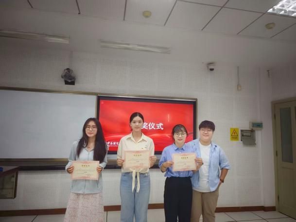 经过角逐,张润玉荣获本次党史故事宣讲比赛一等奖,徐书颖和何冉冉荣获二等奖,孟懿雯、潘妍和马梦茜荣获三等奖,谢瑾、周昕洋、张赫和刘芷吟荣获优秀奖。三位评委老师为获奖选手颁奖表示祝贺,并一起合影留念。